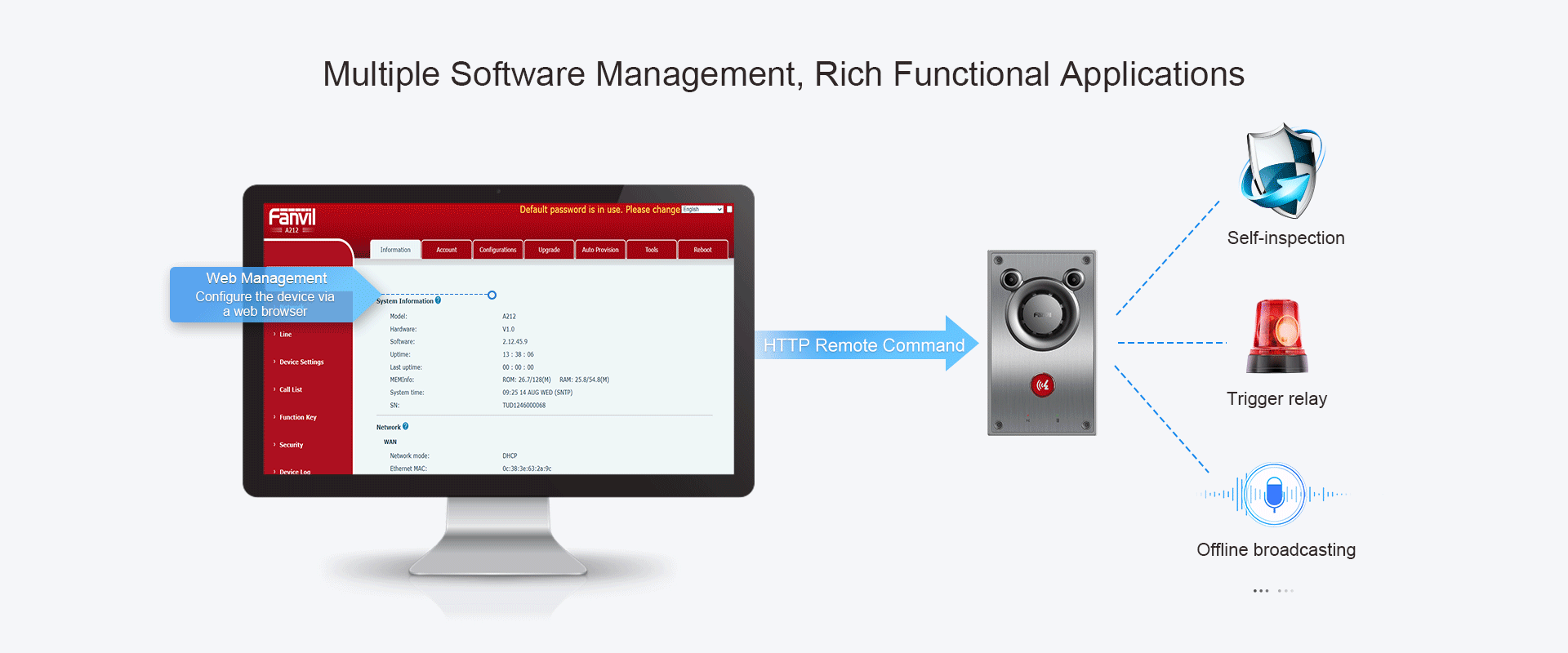 Intercomunicador de audio Fanvil A12. Altavoz incorporado de 10 W y un diseño único de cámara de sonido turbo, que ofrece un rendimiento de audio impresionante.