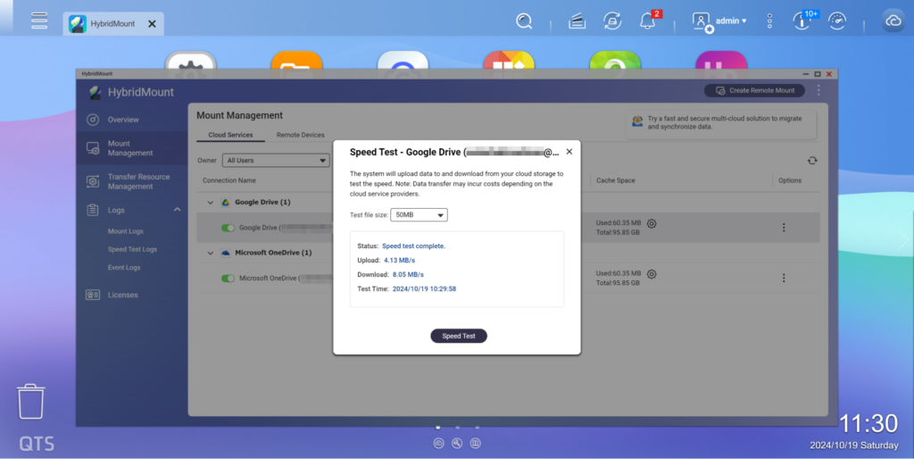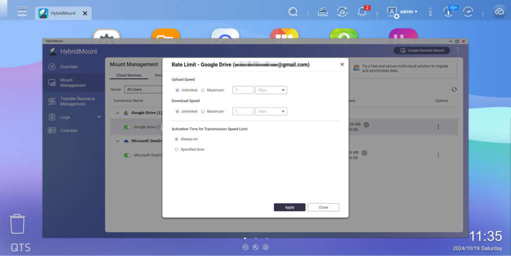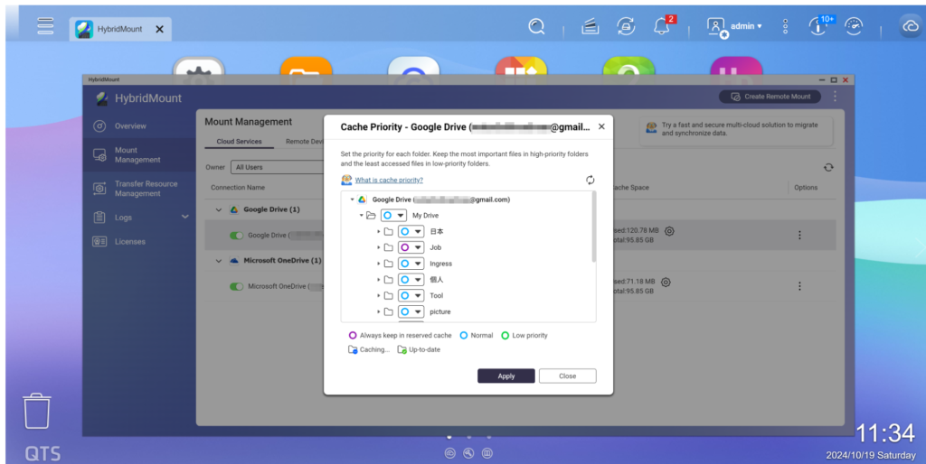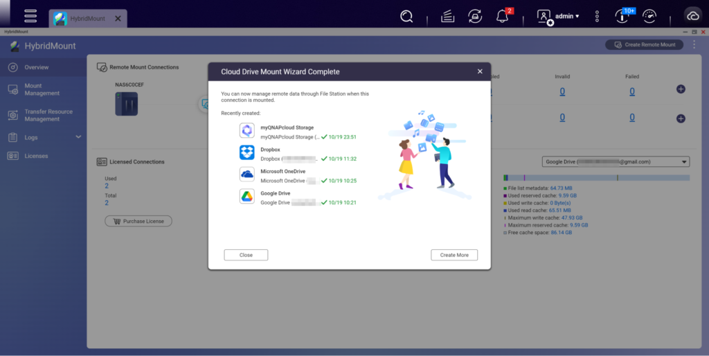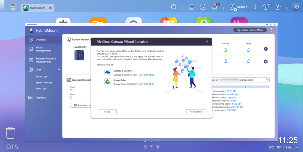 - Modo de red en la nube: Admite SMB / AFP / NFS / FTP / WebDAV / protocolo S3 almacenamiento en la nube datos , y también puede habilitar el mecanismo de caché local para los servicios en la nube relacionados, reduciendo en gran medida el tiempo de espera de lectura/escritura, haciendo que el almacenamiento en la nube datos sea tan fluido y rápido como operar dentro de una red local. Es ideal para la colaboración en línea en servidores de archivos y aplicaciones de análisis de datos a nivel de archivo. HybridMount proporciona 2 cuentas de conexión configurables permanentemente gratuitas, con Licencia adicionales disponibles para su compra según sea necesario.
