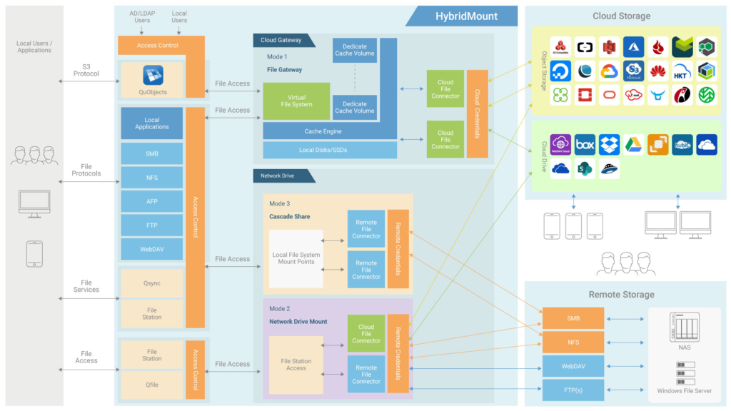 HybridMount proporciona dos modos de montaje de almacenamiento en la nube, los cuales Ayuda establecen un entorno de nube híbrida en NAS .