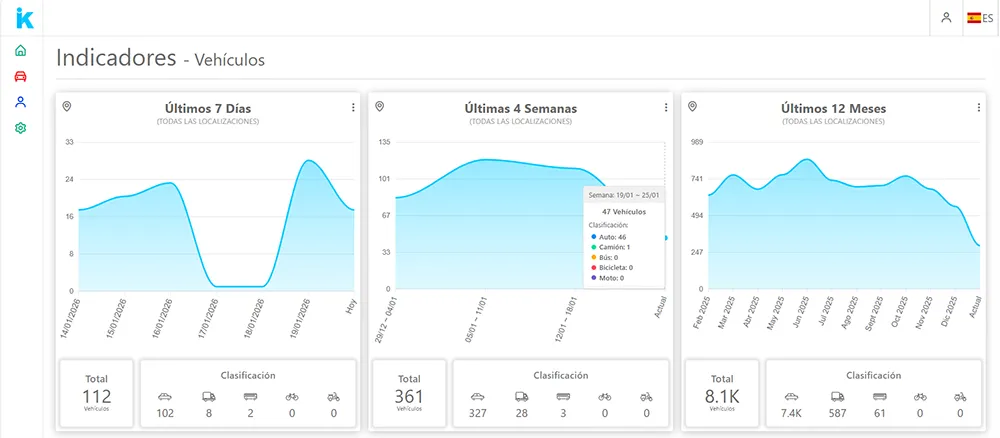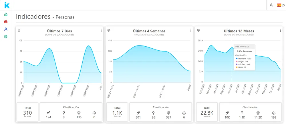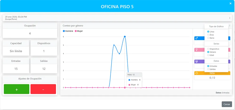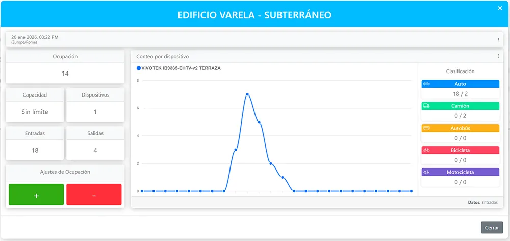 Conteo de personas y vehículos, Control de ocupación máxima y Estadísticas del flujo.