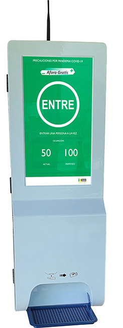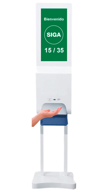 Estación sanitizadora IK-220, es un dispositivo que puede ser usado para cartelería digital, incluye sistema operativo base Android 7.1. Incorpora un dispensador automático sin contacto de alcohol gel con 3000ml de capacidad.