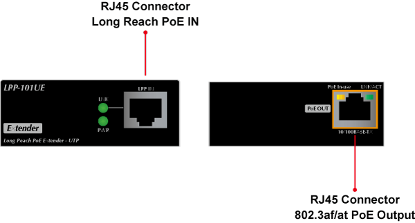 El LRP-101U-KIT consta de un inyector PoE de largo alcance y un conjunto extensor PoE de largo alcance que pueden funcionar en conjunto en cualquier parte de su infraestructura de red. Contiene dos productos completamente nuevos: