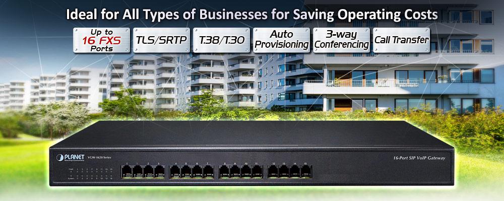 La serie PLANET VGW es fácil de usar para todo tipo de negocios. El VGW-1620FS ofrece comunicaciones de voz de calidad y datos de fax en tiempo real a través de redes IP y no necesita recursos humanos para implementar una red VoIP. Con la arquitectura SIP optimizada, PLANET VGW-1620FS es la opción ideal para el chat de voz proxy P2P/SIP (IP PBX) y la solución de ahorro de costes ITSP.