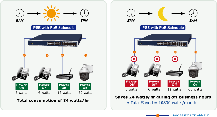 En el marco de la tendencia mundial de ahorro de energía y de la contribución a la protección del medio ambiente en la Tierra, el UPOE-1600G puede controlar eficazmente la fuente de alimentación, además de su capacidad de proporcionar una gran potencia en vatios. La función de "programación de PoE" incorporada le ayuda a habilitar o deshabilitar la alimentación de energía PoE para cada puerto PoE durante intervalos de tiempo específicos y es una función poderosa para ayudar a las PYMES o empresas a ahorrar energía y dinero. También aumenta la seguridad al apagar los dispositivos de salida que no deberían estar en uso durante las horas no laborales.