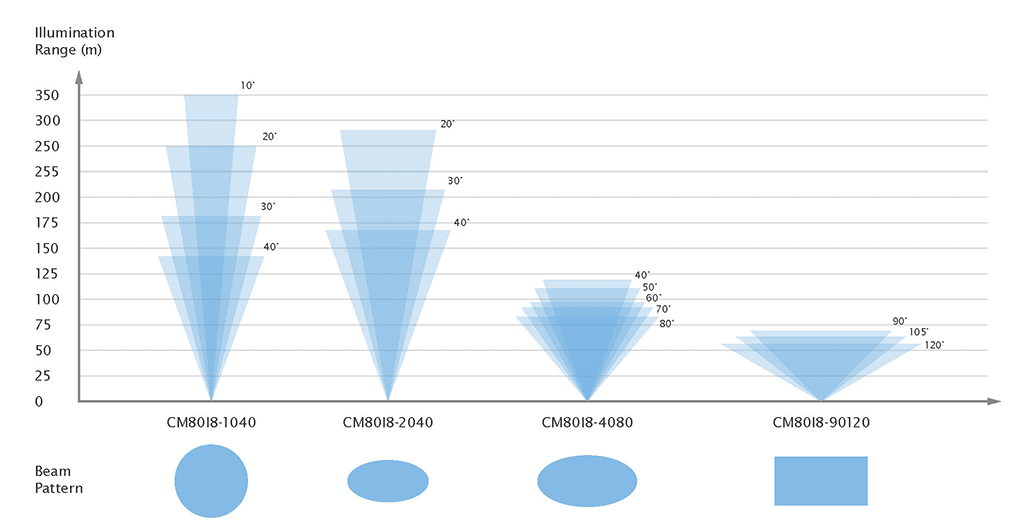 Iluminador IR, 80W, 24 LEDs IR, 850nm, 10° ~ 180° Ángulo de haz ajustable