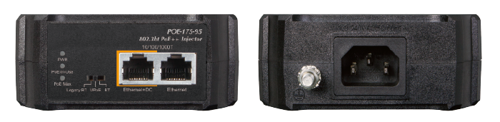 El inyector PoE es fácil de instalar mediante Plug and Play y viene con una resolución de problemas sencilla, lo que facilita su uso por parte de usuarios domésticos y comerciales. Además, el POE-175-95 viene en una carcasa compacta y tiene una fuente de alimentación interna incorporada. En el panel lateral del POE-175-95 hay un conector de entrada de CA de 100-240 V, LED en tiempo real (LED de encendido, LED de PoE en uso y LED de PoE máximo) y dos puertos RJ45: puerto Ethernet y puerto Ethernet+CC. Simplemente conecte los cables Ethernet y el cable de alimentación de CA, y el POE-175-95 estará listo para proporcionar comunicación de red de alta velocidad y las funciones del inyector PoE++ 802.3bt simultáneamente sin necesidad de configuración de software.