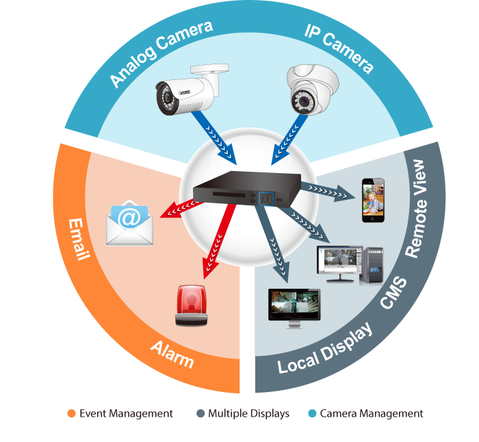No solo para aplicaciones a pequeña escala, como tiendas minoristas y pymes, el sistema HDVR se puede ampliar para la gestión de múltiples sitios con el software CMS incluido. El software CMS es capaz de gestionar hasta 64 canales de cámaras simultáneamente. Con una interfaz gráfica fácil de usar, los usuarios pueden controlar fácilmente cualquier cámara o HDVR y dar una respuesta rápida cuando se activa un evento. Con la compatibilidad con CMS, los usuarios pueden hacer que la vigilancia sea más eficiente.