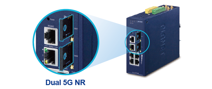 Para mejorar la confiabilidad, el ICG-2515W-NR está equipado con ranuras para SIM dual que admiten conmutación por error y roaming para garantizar una conectividad ininterrumpida para comunicaciones celulares de misión crítica. Proporciona una forma más flexible y sencilla para que los usuarios creen un servicio de uso compartido de red instantáneo a través de 5G-NR en lugares públicos como transportes, eventos al aire libre, etc.