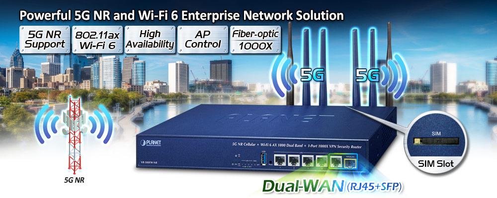 La innovación de Internet ha creado enormes oportunidades a nivel mundial para el comercio electrónico y el intercambio de información. Se ha vuelto esencial que las empresas se centren más en los problemas de seguridad de la red. La demanda de seguridad de la información y conexión inalámbrica se ha convertido en la principal preocupación de las empresas. Para satisfacer esta demanda, PLANET ha lanzado el enrutador de seguridad VPN 5G NR celular + Wi-Fi 6 VR-300FW-NR todo en uno. Puede proporcionar acceso de banda ancha ultrarrápido con red celular 5G. El VR-300FW-NR también cuenta con cinco puertos Ethernet (4 LAN y 1 LAN/WAN), un puerto de fibra (LAN/WAN), capacidad Wi-Fi IEEE 11ax y tecnología VPN, todo en una carcasa de metal compacta pero resistente. Establece una conexión celular rápida entre los dispositivos equipados con Ethernet. El VR-300FW-NR es una solución integrada 5G NR y Wi-Fi 6 para integradores de sistemas, ISP y empresas.