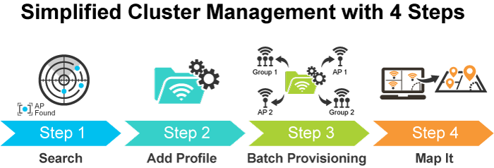 El VR-300 proporciona una administración centralizada de la serie PLANET Smart AP a través de una interfaz gráfica de usuario web fácil de usar. Es fácil configurar el AP para la SSID inalámbrica, la banda de radio y las configuraciones de seguridad. Con un proceso de configuración de cuatro pasos, se pueden entregar simultáneamente diferentes propósitos de perfiles inalámbricos a múltiples AP o grupos de AP para minimizar el tiempo, el esfuerzo y el costo de implementación.