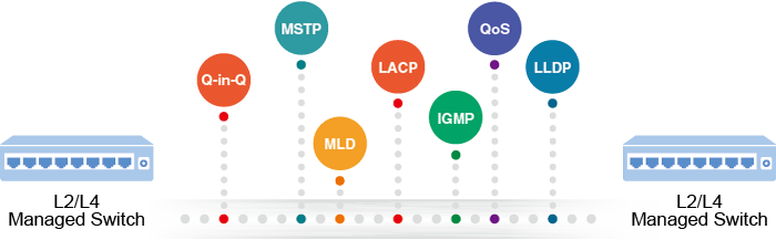 La serie XGS-6320 se puede programar para funciones avanzadas de gestión de conmutadores, como agregación dinámica de enlaces de puertos, VLAN Q-in-Q, protocolo de árbol de expansión múltiple (MSTP), calidad de servicio de capa 2/4, control de ancho de banda y vigilancia IGMP/MLD. Permite el funcionamiento de un enlace troncal de alta velocidad que combina varios puertos. Al admitir 8 grupos de enlaces troncales, permite un máximo de 16 puertos por enlace troncal y también admite conmutación por error de conexión.