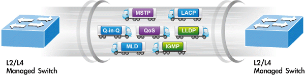 El SGS-6341-24P4X se puede programar para funciones básicas de administración de conmutadores, como configuración de velocidad de puerto, agregación de puertos, VLAN, protocolo de árbol de expansión múltiple, WRR, control de ancho de banda y detección de IGMP. Este conmutador proporciona funciones de VLAN etiquetada 802.1Q, Q-in-Q, VLAN de voz y protocolo GVRP. Al admitir la agregación de puertos, el SGS-6341-24P4X permite el funcionamiento de un enlace troncal de alta velocidad combinado con múltiples puertos. Permite hasta 16 grupos para enlaces troncales con un máximo de 8 puertos para cada grupo.