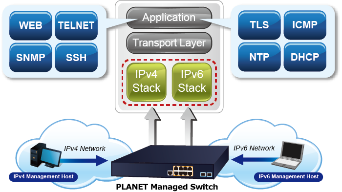 Con la compatibilidad con el protocolo IPv6/IPv4 y las interfaces de administración fáciles y amigables, el GS-6320-8P2X es la mejor opción para que los proveedores de servicios de vigilancia IP, VoIP e inalámbricos se conecten con la red IPv6. También ayuda a las PYMES a dar el salto a la era IPv6 con la menor inversión y sin tener que reemplazar las instalaciones de red, aunque los ISP establezcan la red de borde FTTx IPv6.