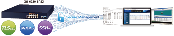 El GS-6320-8P2X también proporciona funciones de detección de DHCP, protección de origen de IP e inspección de ARP dinámica para evitar ataques de detección de IP y descartar paquetes ARP con direcciones MAC no válidas. El administrador de red ahora puede construir redes corporativas altamente seguras con considerablemente menos tiempo y esfuerzo que antes.