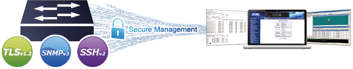Además, el GS-6311-48T6X ofrece una gestión remota segura al admitir la conexión SSHv2 que cifra el contenido del paquete en cada sesión.