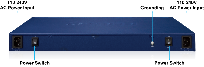 El SGS-6310-24T4X está equipado con dos unidades de fuente de alimentación de CA de 100~240 V para la instalación de una fuente de alimentación redundante. También se proporciona un sistema de alimentación redundante para mejorar la confiabilidad con las unidades de fuente de alimentación de CA. El sistema de alimentación redundante está diseñado específicamente para manejar las demandas de instalaciones de alta tecnología que requieren la máxima integridad de la energía.