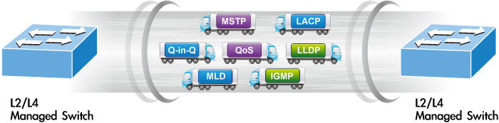 El GS-4210-8P2S se puede programar para funciones avanzadas de administración de conmutadores, como agregación de enlaces de puertos dinámicos, VLAN 802.1Q y VLAN Q-in-Q, protocolo de árbol de expansión múltiple (MSTP), protección de bucle y BPDU, detección de IGMP y detección de MLD. A través de la agregación de enlaces, el GS-4210-8P2S permite el funcionamiento de un enlace troncal de alta velocidad para combinarlo con varios puertos y también admite conmutación por error. Además, el Protocolo de descubrimiento de capa de enlace (LLDP) es el protocolo de capa 2 incluido para ayudar a descubrir información básica sobre los dispositivos vecinos en el dominio de transmisión local.
