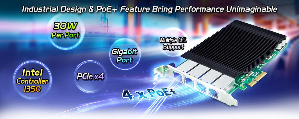 Adaptador de servidor PCI Express PoE+ 10/1000T 802.3at PoE+ de 4 puertos (presupuesto PoE de 120 W, PCIe x4, -10~60 grados C)