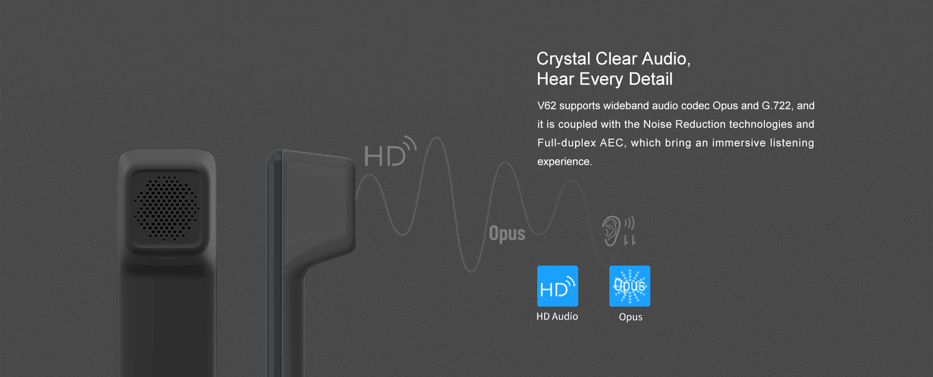 - Compatible con códec de audio G.722 y Opus, audio HD en altavoz y auricular