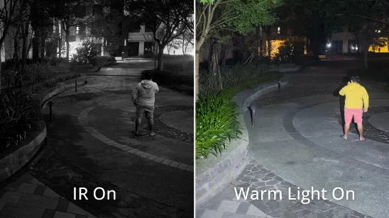 Este modo activa la iluminación blanca cálida para mejorar la visibilidad en entornos con poca luz sin necesidad de iluminación adicional. La iluminación continua y ajustable no solo mejora la visibilidad nocturna, sino que también disuade proactivamente a los visitantes no deseados