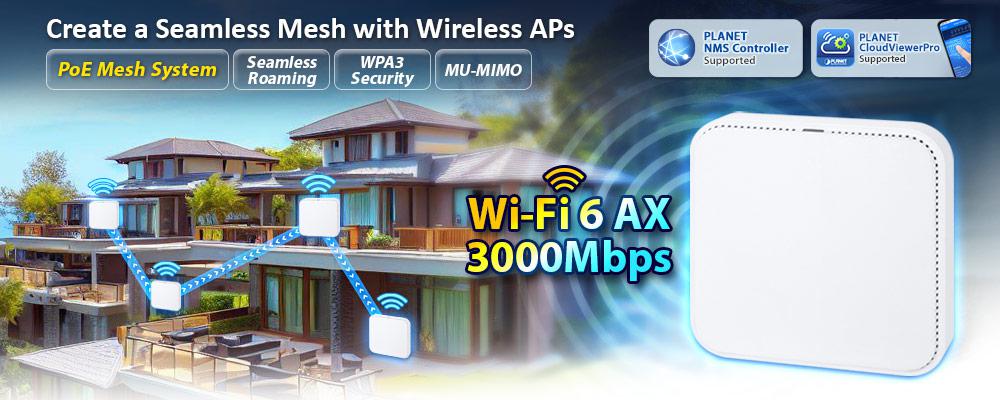 El punto de acceso inalámbrico 802.11ax de banda dual WDAP-C3000AX de 3000 Mbps de PLANET, compatible con Wi-Fi MESH, MU-MIMO, OFDMA, Seamless Roaming, Beamforming y tecnología BSS Coloring, proporciona una velocidad inalámbrica máxima de 2400 Mbps en la banda de 5 GHz y 600 Mbps en la banda de 2,4 GHz. La cantidad máxima de usuarios clientes es de hasta 256, lo que garantiza una conectividad más segura y sólida con la adopción de la tecnología Wi-Fi 6.